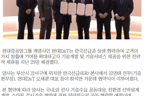 현대E&T - 한국선급(KR) “기술개발 및 기술서비스 제공” 포괄적 MOU 체결